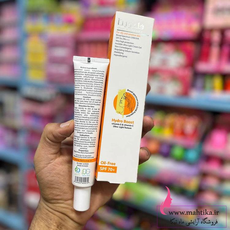 این ضد ایرانی محصولی از دانشگاه شهید بهشتی می باشد ضد آفتاب فلیچا  با SPF 70+ از پوست شما در برابر اشعه‌های UVA و UVB محافظت می‌کند و مانع پیری زودرس، لک و چین‌وچروک می‌شود.